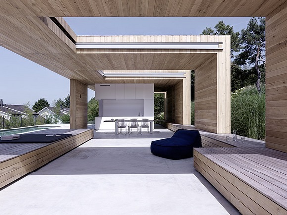 Spillet mellom vann, betong og varmt treverk er nydelig.